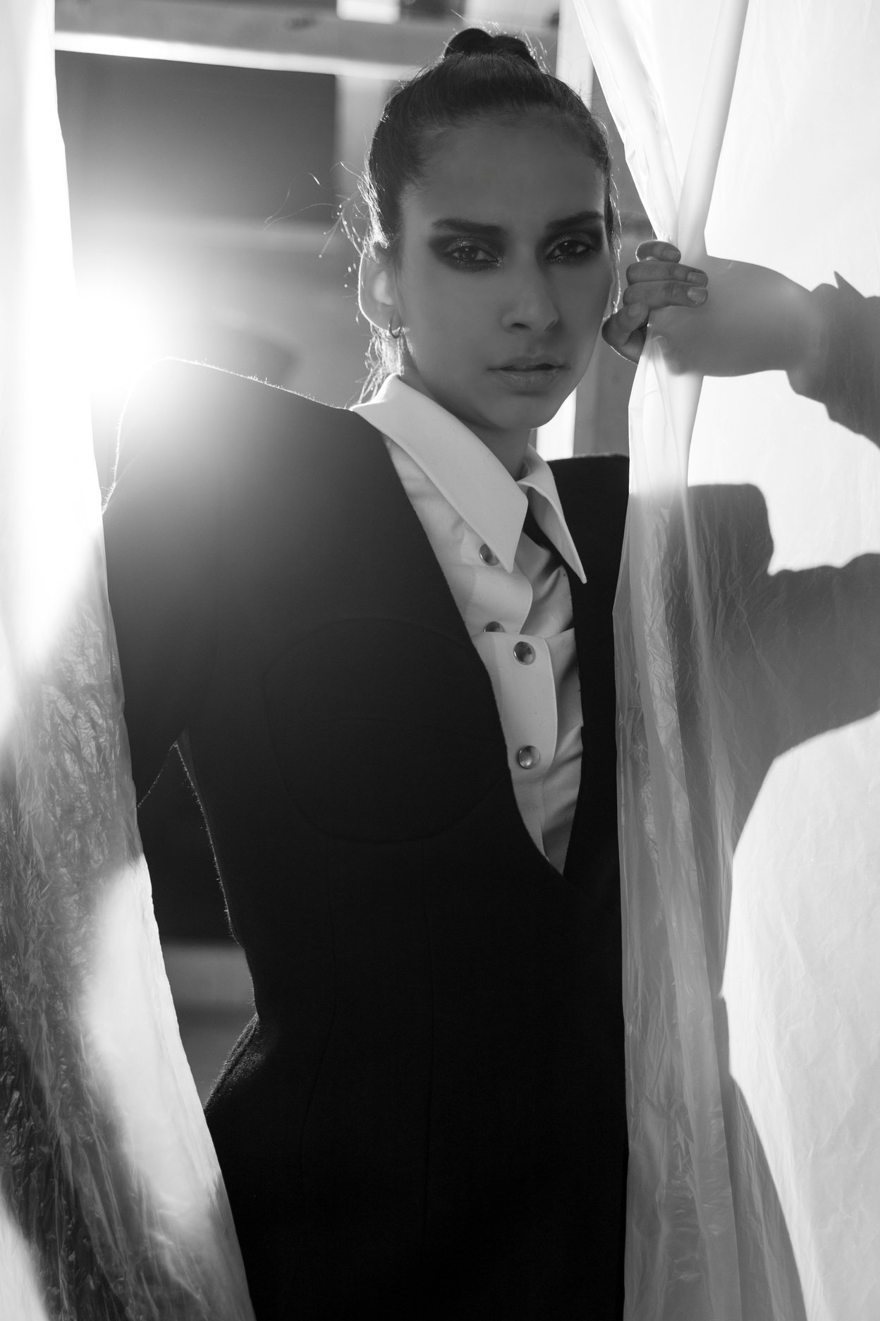 The theme was minimalistic, black and white, high key photography focussing on the shape of the garments.